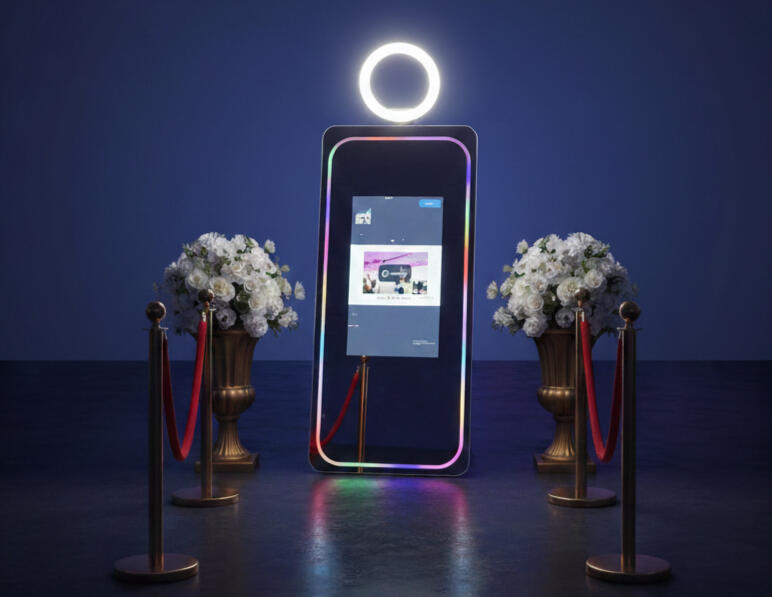 Transform your event with our stunning Magic Mirror Photo Booth where elegance meets entertainment. This isn't just a photo booth; it's a captivating centerpiece that draws guests in with its sleek, full-length mirror and mesmerizing LED frame. Watch as the mirror comes alive with interactive animations, guiding your guests through a delightful photo experience. With professional lighting, instant high-quality prints, and digital sharing via QR code, everyone looks their absolute best while creating memories they'll treasure forever. From intimate moments to large group shots, the Magic Mirror accommodates 1-15 people comfortably, making it perfect for weddings, corporate events, and celebrations of all kinds.